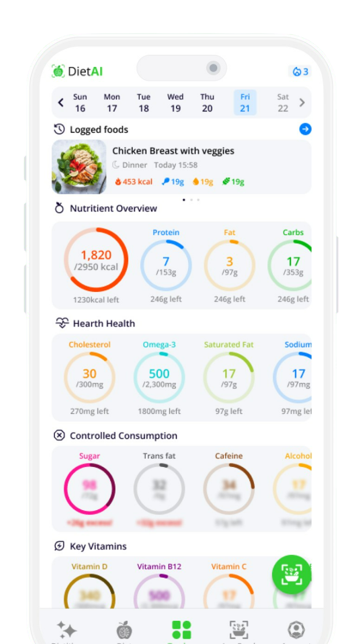 DietAI akan membantu Anda membentuk kebiasaan sehat, mengontrol konsumsi karbohidrat, dan menemukan keseimbangan tanpa stres dalam kehidupan sehari-hari Anda.